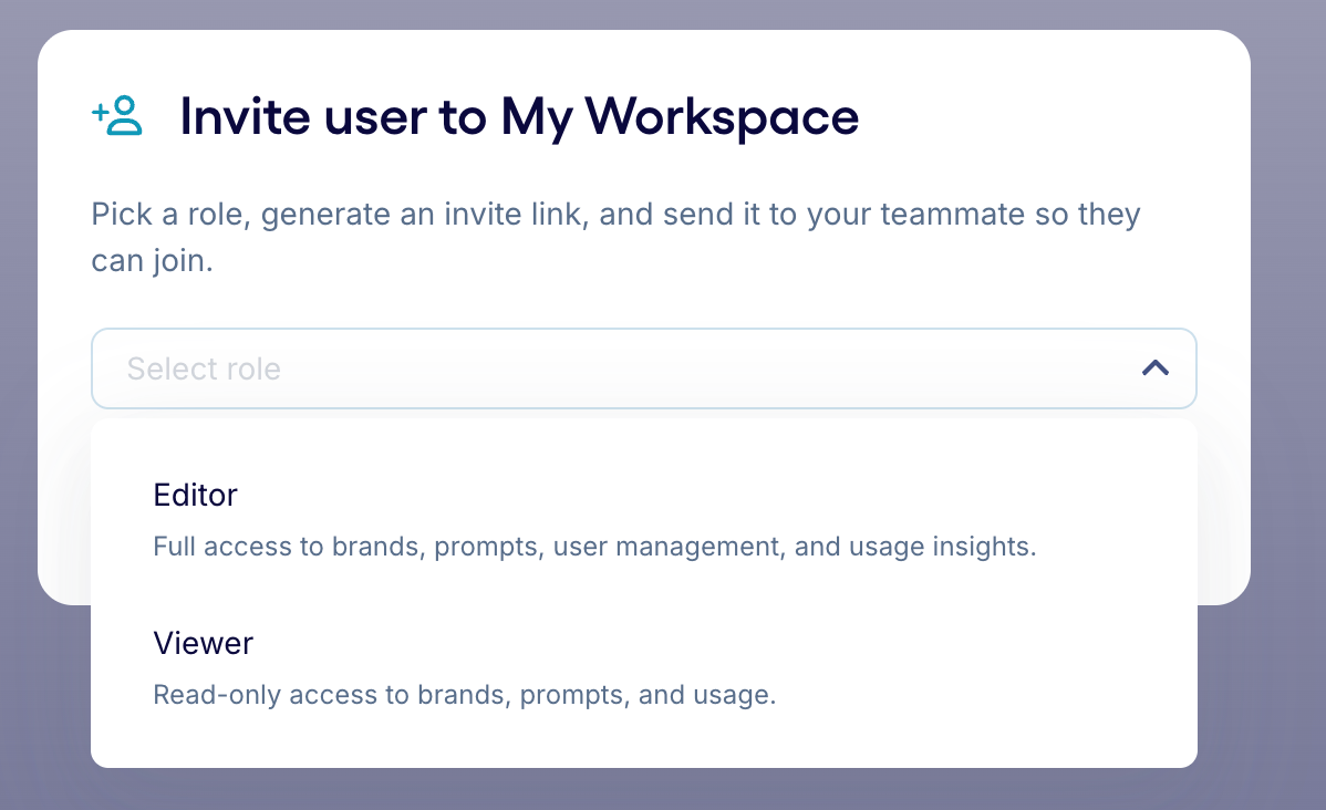 Our Workspace feature makes it easy for teams to collaborate, share insights, and stay aligned when analyzing brand visibility in LLM-generated answers.