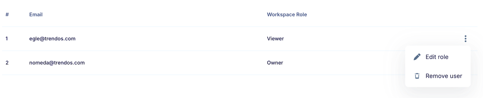 Each signed-in user is an owner of their dedicated workspace, to which all brands, custom prompts, groups and subscriptions are connected. To this workspace, one can invite other signed-in Trendos users as viewers or editors.